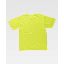 Camiseta de alta visibilidad de manga corta en poliéster. Corte clásico. Cuello redondo en punto canalé con cubrecosturas interior. Tacto suave.