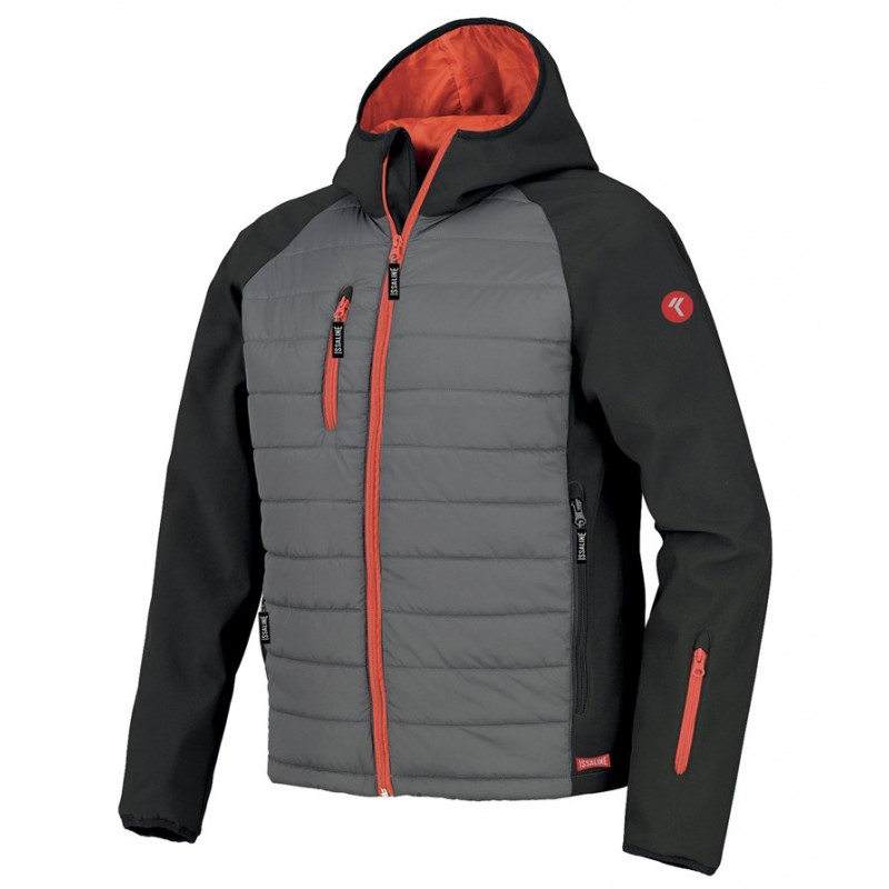 Chaqueta técnica con capucha fija, dos amplios bolsillos frontales, bolsillo porta documento, dos bolsillos interiores y un “bolsillo napoleón”. Cordón elástico en la cintura para un ajuste óptimo.