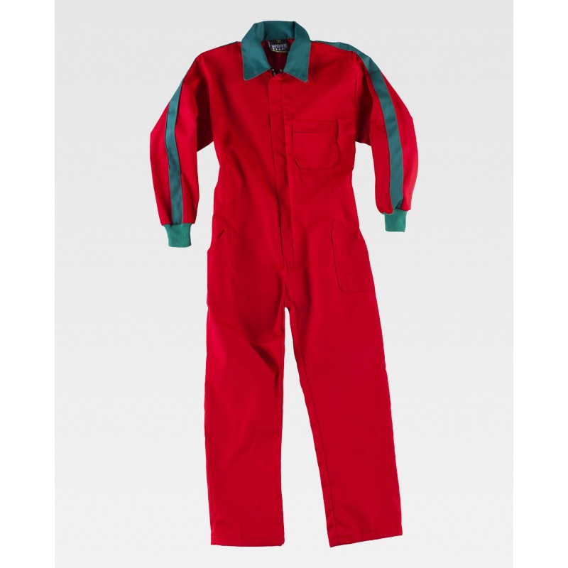 Buzo infantil combinado. Cuello camisero y cierre de cremallera de nylon oculta. Manga larga con puño elástico. Un bolso de pecho de plastón con cremallera de nylon, dos bolsos de abertura inclinada en los costados. Un bolso trasero de plastón y un bolso de espátula. Elástico en la espalda. Cuello, tira de manga y puños combinados.