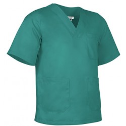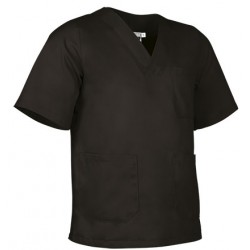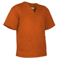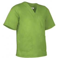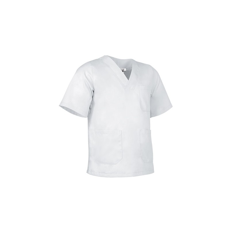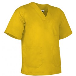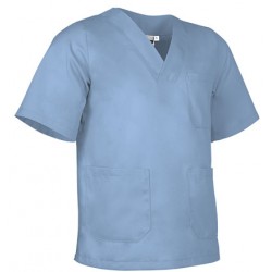 Blusón de trabajo cerrado de corte ancho, confeccionado en tejido de sarga ligera y suave.