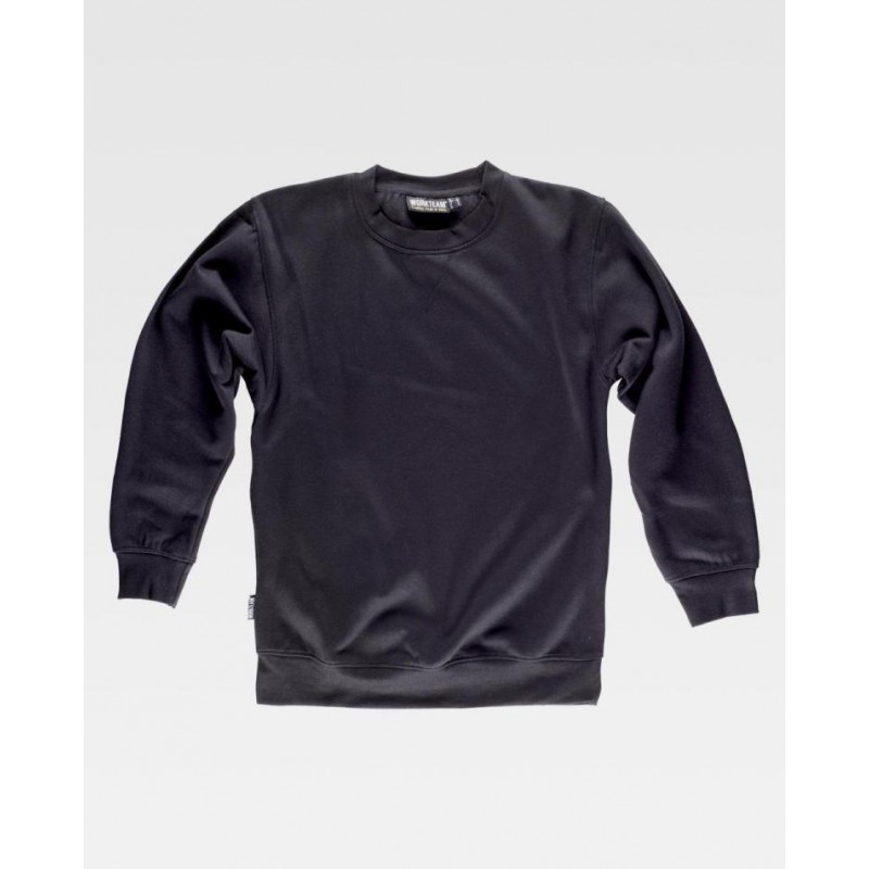 Sudadera clásica de cuello redondo con costura a pico de fantasía. Cubrecosturas en el interior del cuello y costuras reforzadas. Suave y cálido acabado interior. Cuello, puños y cintura elásticos en punto canalé.