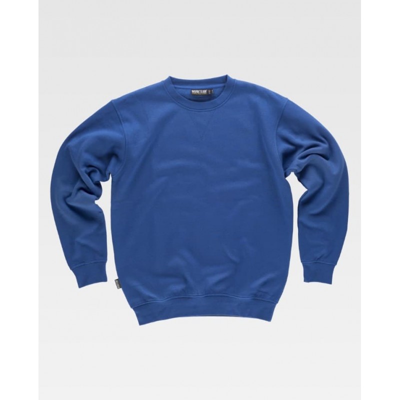 Sudadera clásica de cuello redondo con costura a pico de fantasía. Cubrecosturas en el interior del cuello y costuras reforzadas. Suave y cálido acabado interior. Cuello, puños y cintura elásticos en punto canalé.